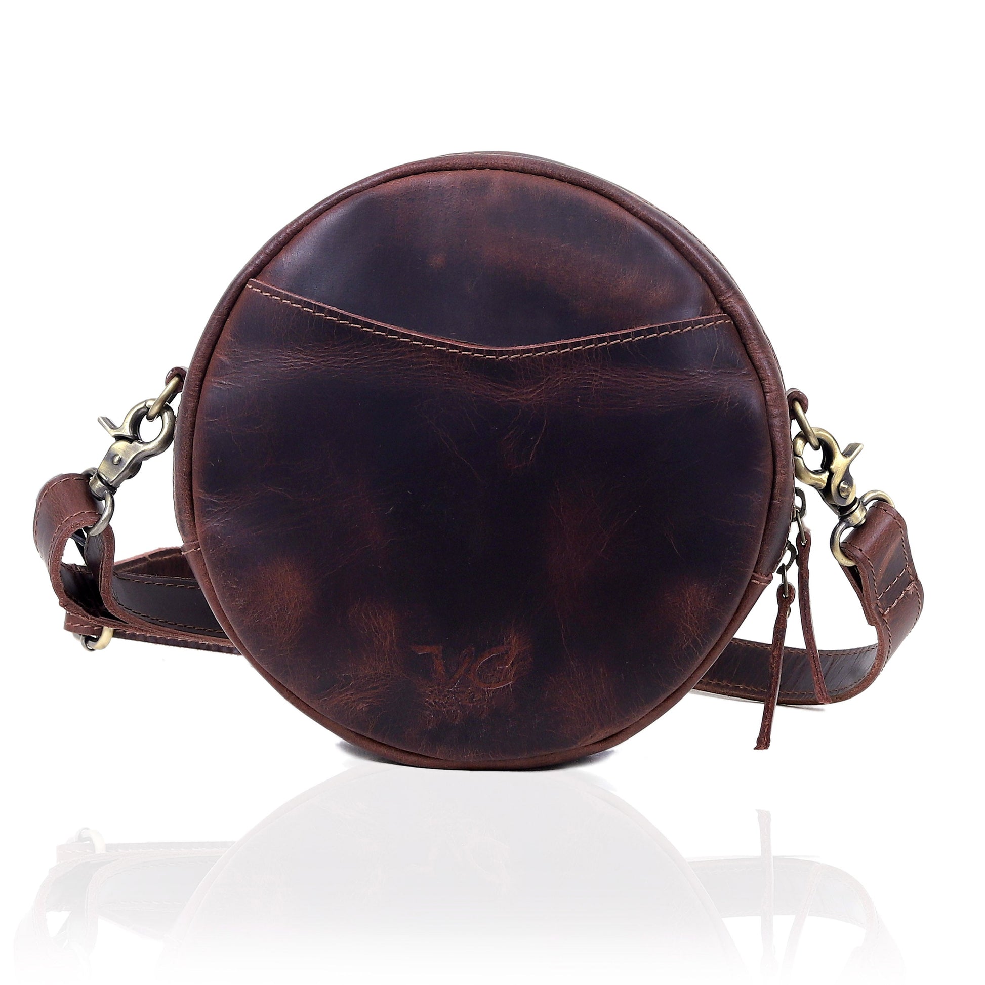• Stylish Design with Ample Storage: Our VC leather crossbody bag boasts a trendy circle design and provides multiple pockets for effortless organization. It includes 1 front open pocket, 1 back zipper pocket, and 1 main zipper pocket which contains an additional zipper pocket, a main pocket, a slip pocket, and a keychain.