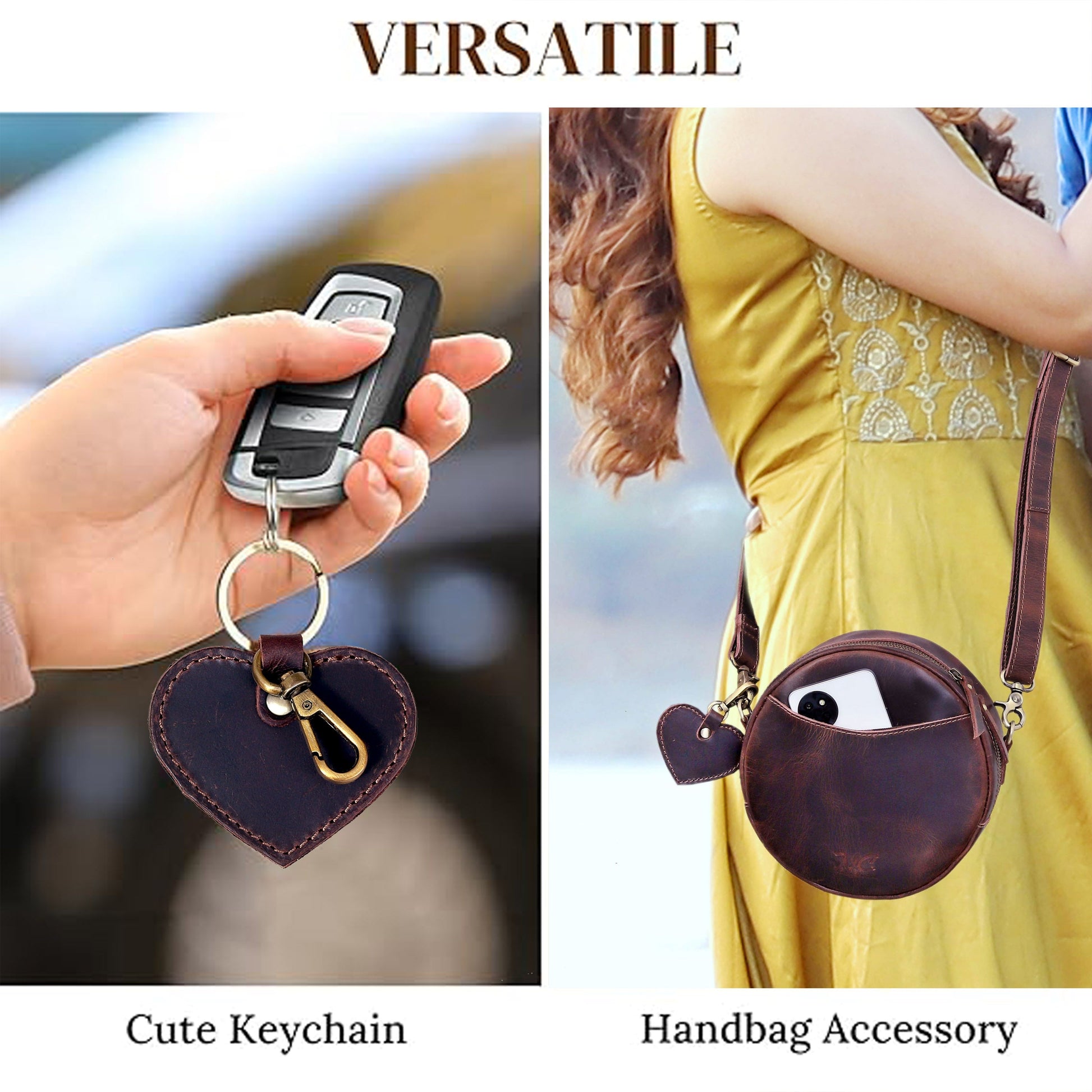 Stylish Design with Ample Storage: Our VC leather crossbody bag boasts a trendy circle design and provides multiple pockets for effortless organization. It includes 1 front open pocket, 1 back zipper pocket, and 1 main zipper pocket which contains an additional zipper pocket, a main pocket, a slip pocket, and a keychain.