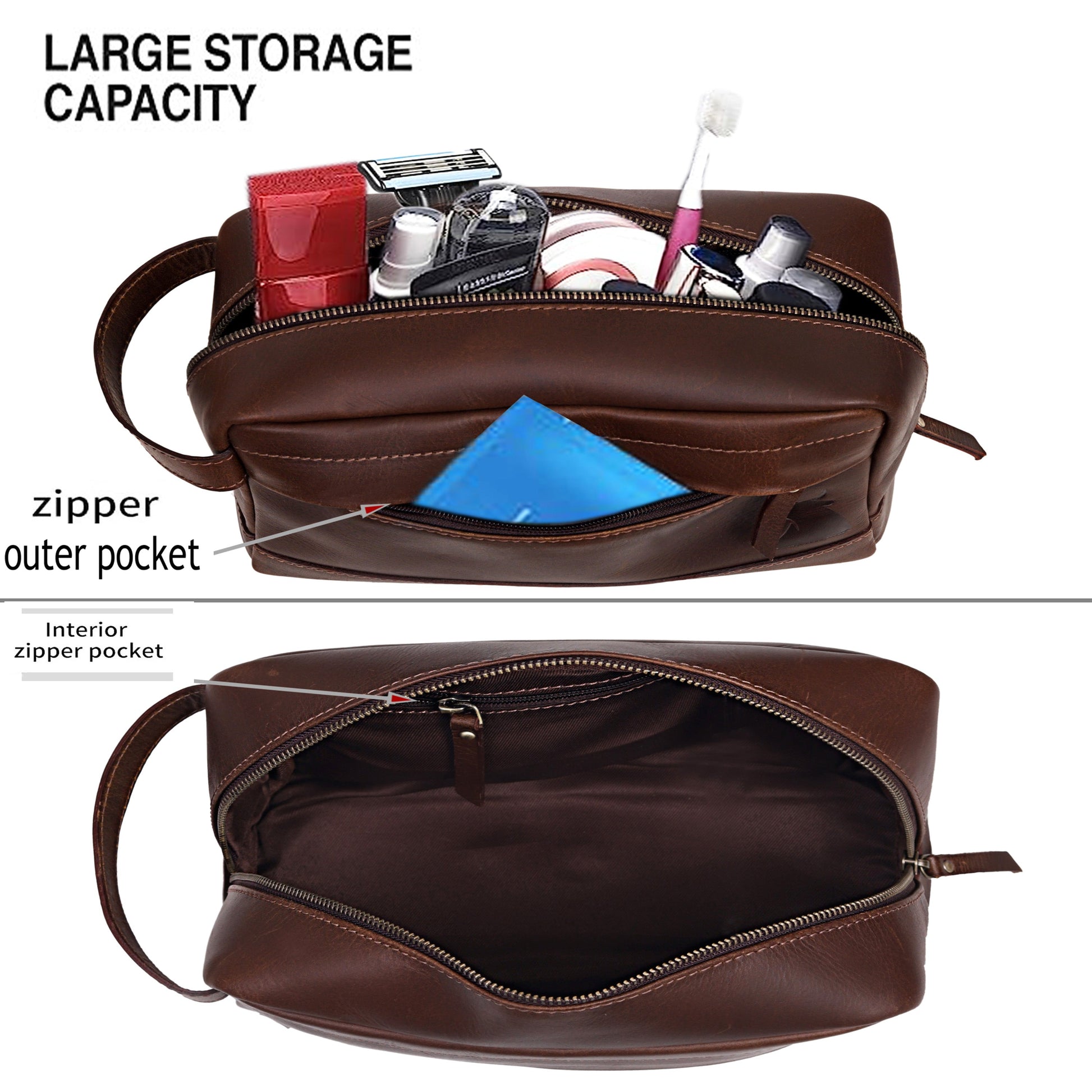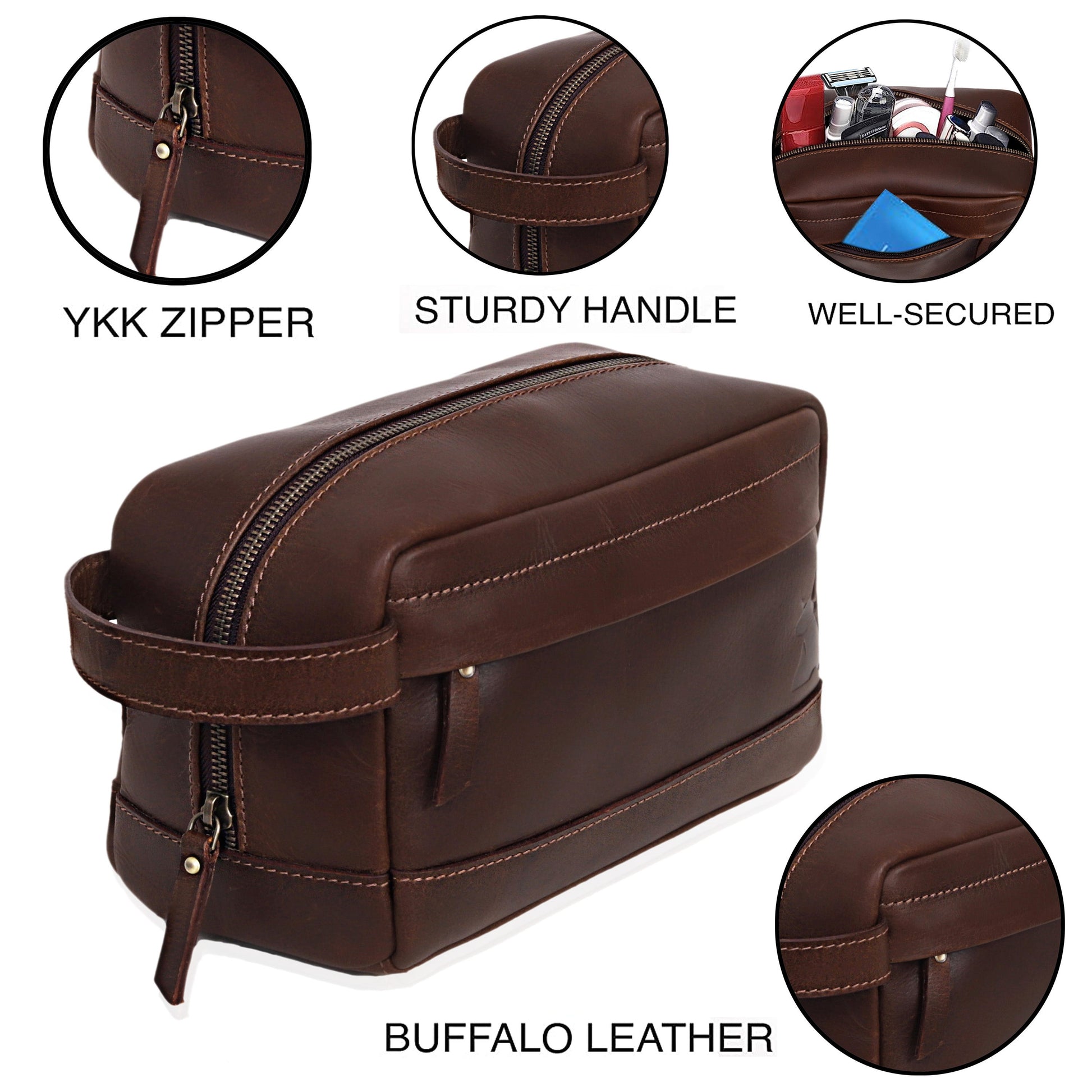 - EXQUISITE CRAFTSMANSHIP AND ENDURING QUALITY: Handmade in Italy using time-honored craftsmanship, our toiletry bag is crafted from top-grade buffalo leather. Featuring brass hardware, tear-resistant lining, and YKK zippers, it ensures durability and timeless charm, becoming a cherished travel companion for years to come.