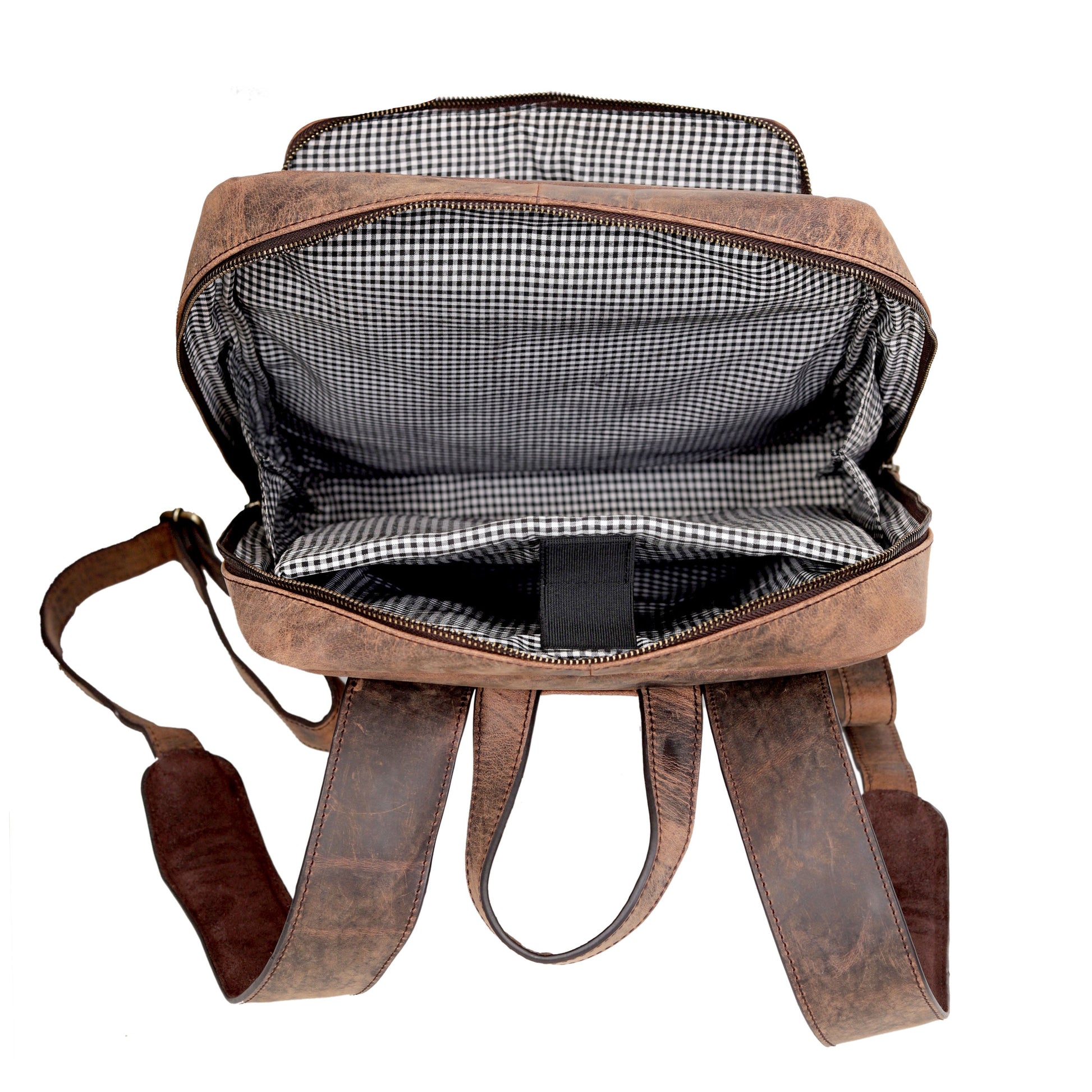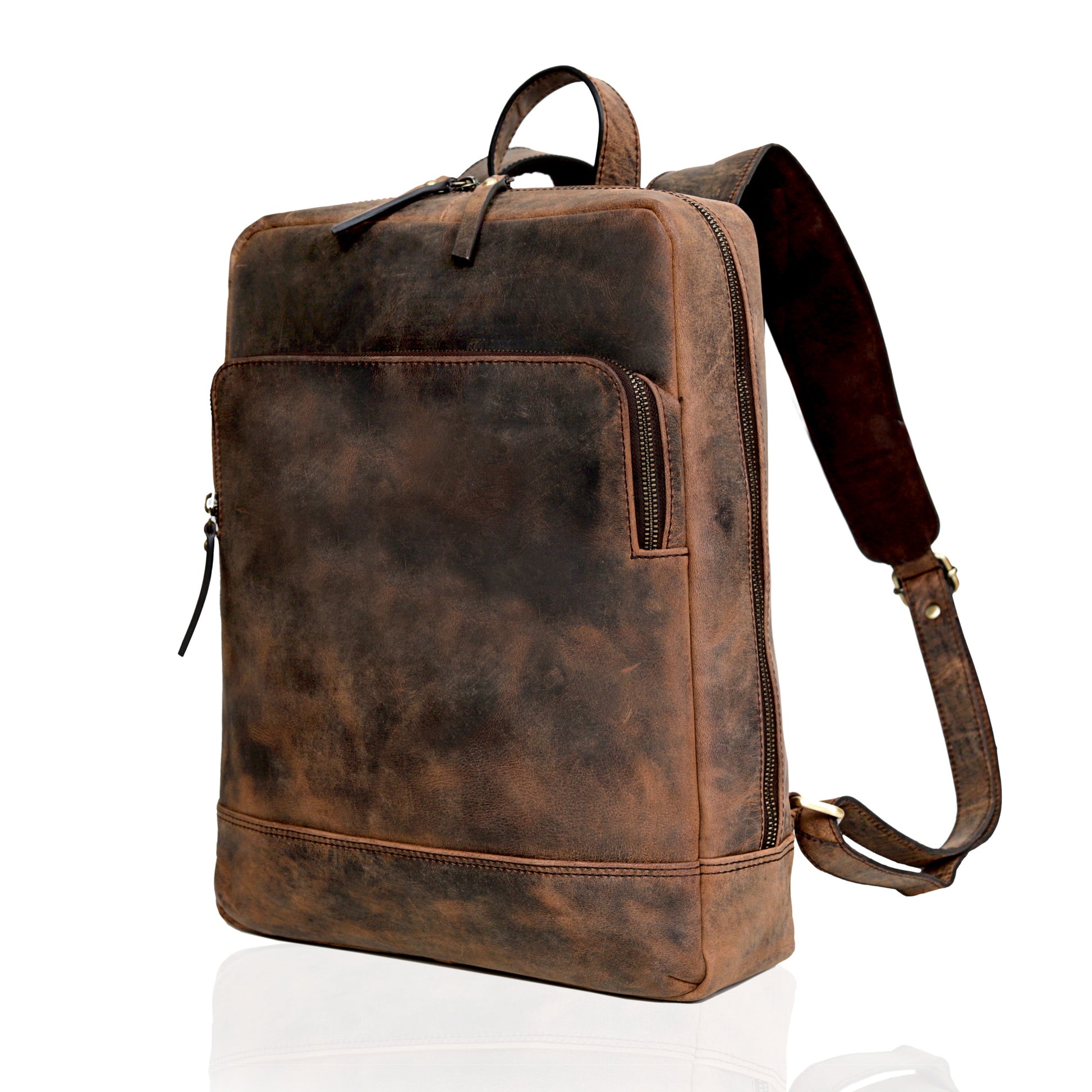 Organizer pockets for phone, pens, and cards brown leather backpack perfect to carry everywhere. With laptop compartment for a 15 Inch PC, a 12 inch tablet