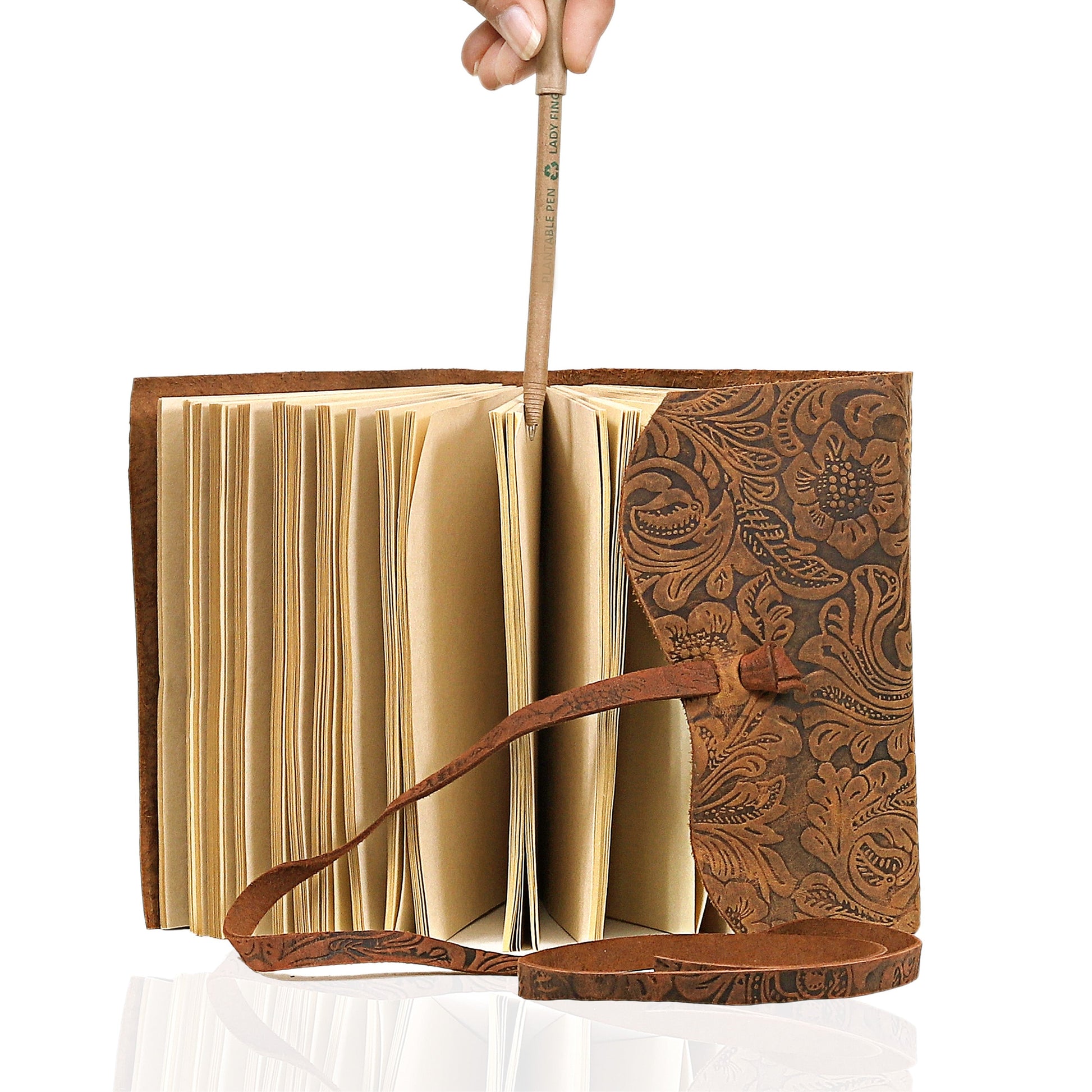 - INSPIRE YOUR ARTISTRY: Unleash your creative journey with our Handmade Leather Book Journal, an aesthetic and versatile canvas suitable for watercolor, acrylic colors, pastel colors, and all dry and wet mediums. Perfect for scrapbooking, sketching, and calligraphy, it features thick, no-bleed craft pages and smooth, unlined cotton paper, making it ideal as a sketch pad, watercolor sketchbook, or for any pen-based work.