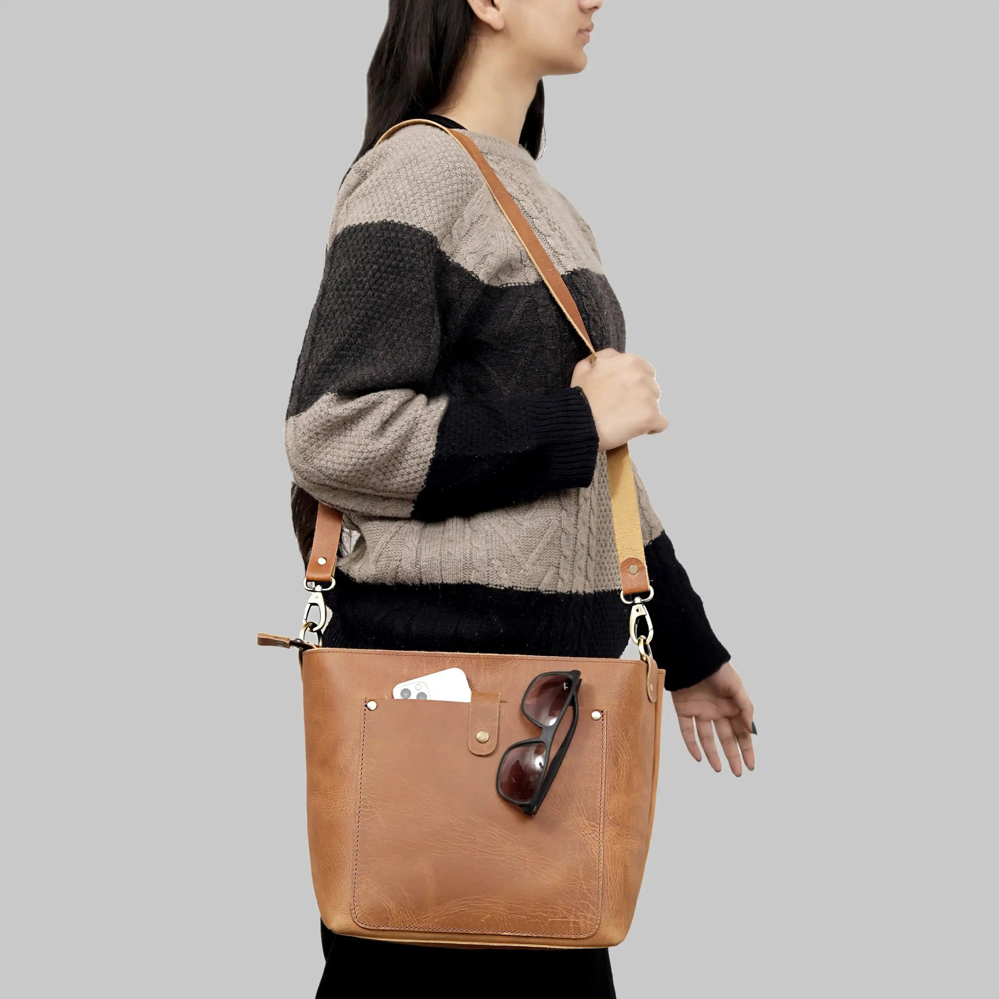 - ONE OF A KIND – The tote is made from full-grain buffalo leather, which is hand-dyed using vegetable tanning method. This artisan technique maintains a natural look of leather, leaving each piece with a slightly different pattern. So there will be only one bag like yours in the world.