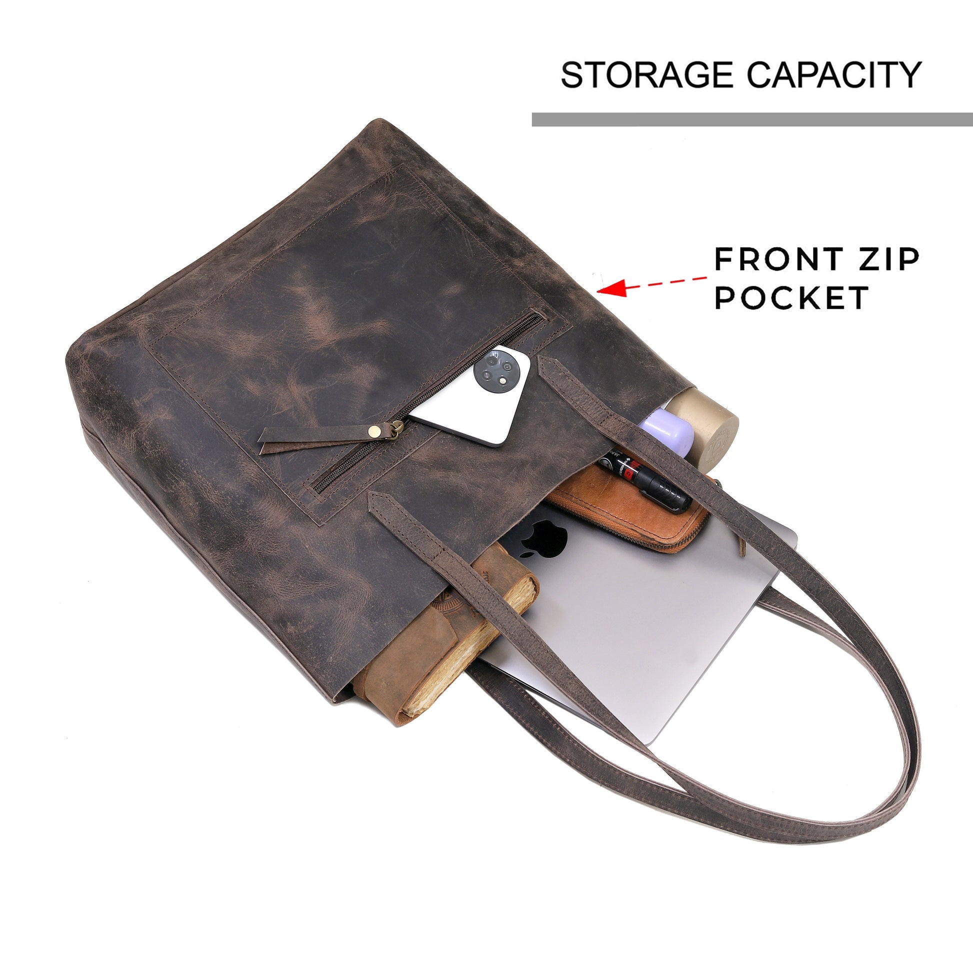 This leather handbag can fit up to 14”, 15" laptop.This leather shoulder bag will be your ultimate choice for mom, wife, ladies or female friends on Birthday,