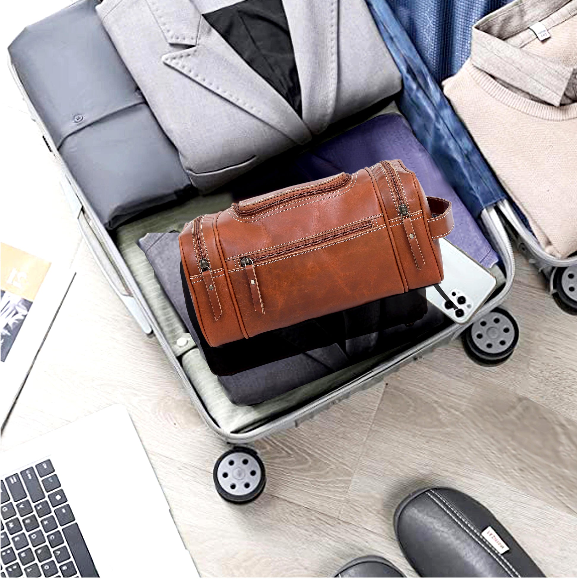 Premium grain leather - our exclusive xl large leather toiletry bag for men is made from top grain leather with waterproof lining and solid brass hook for hanging. This travel toiletry bag will last a lifetime.