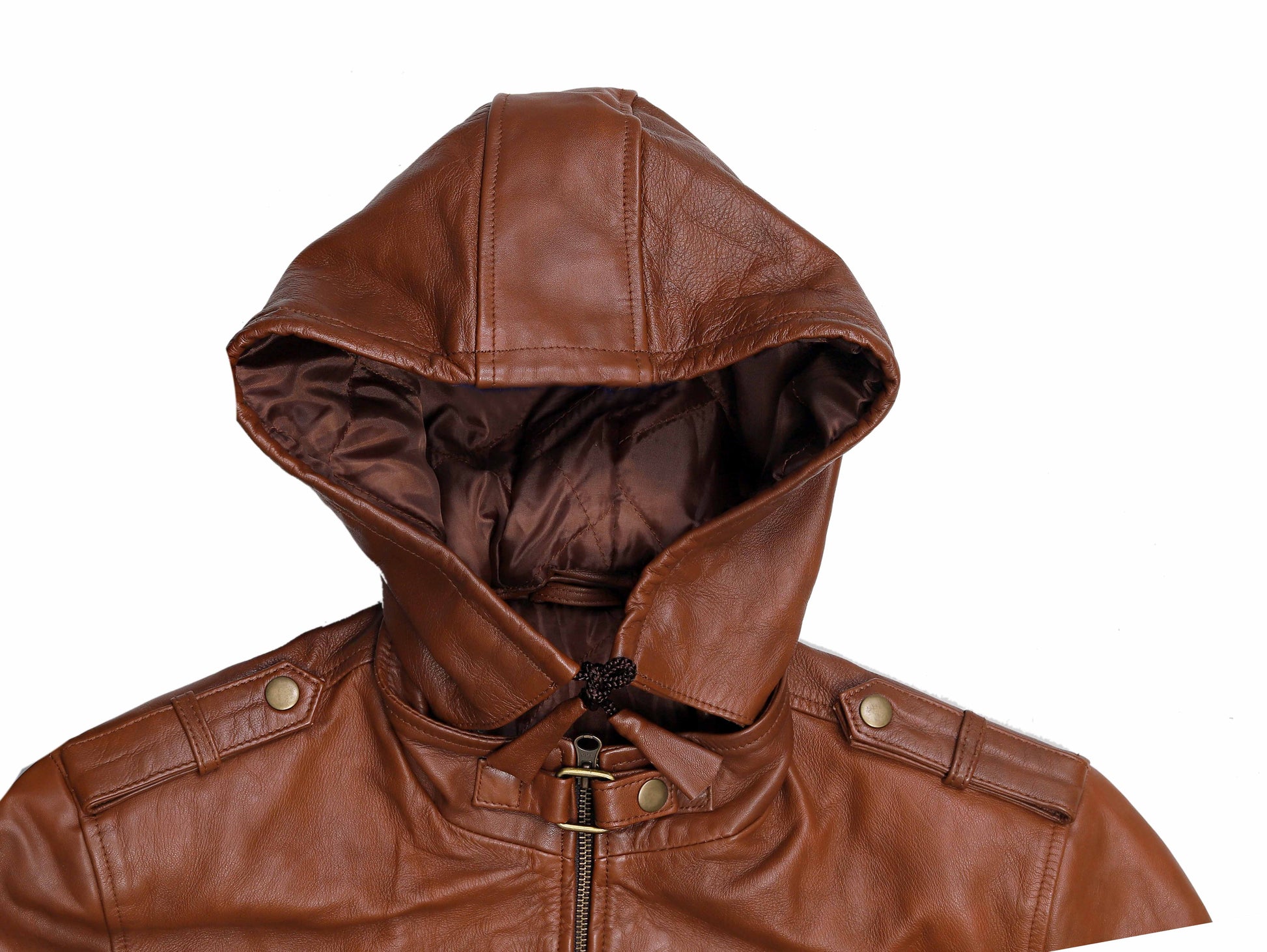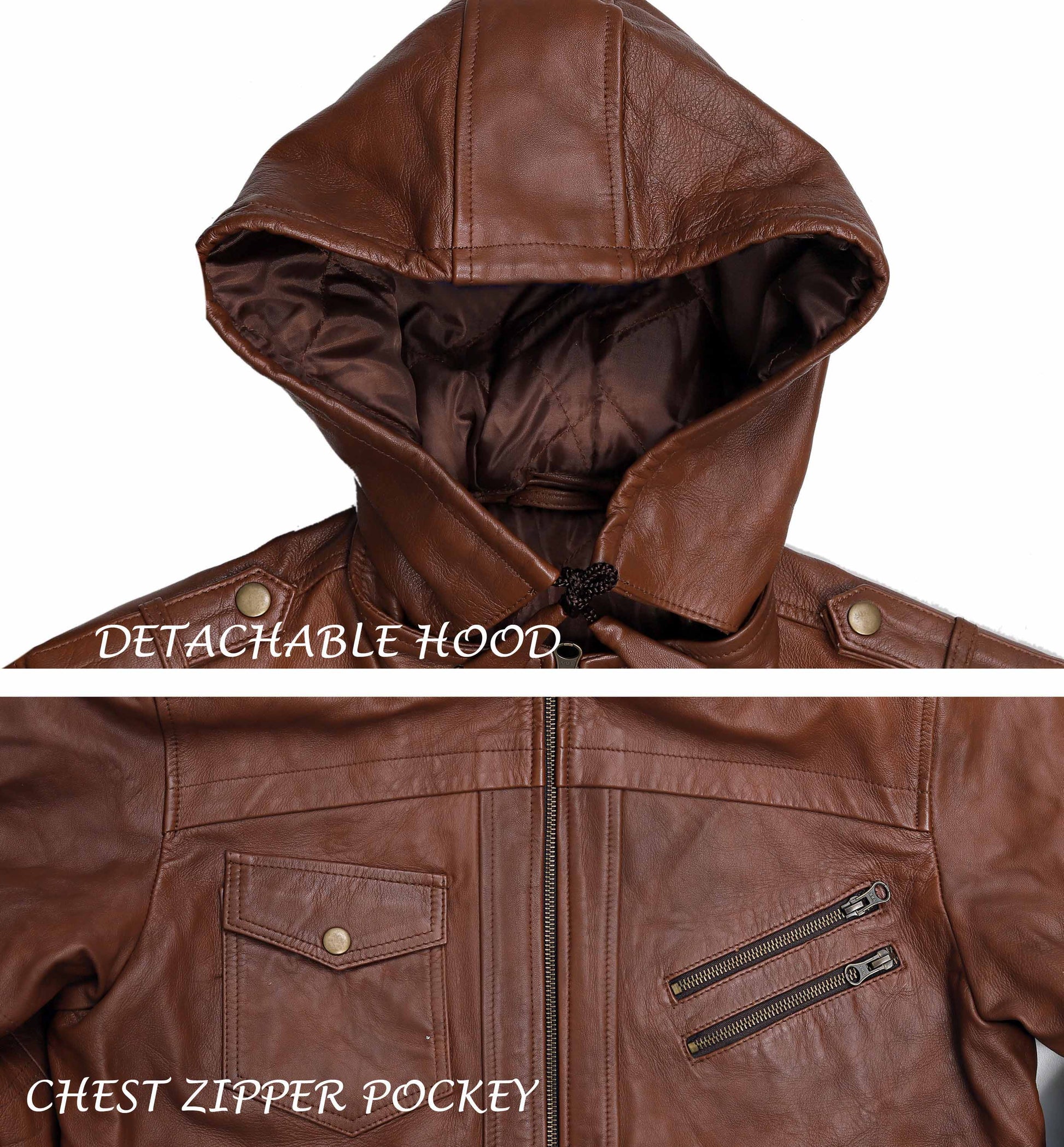 Vintage Retro Leather Jacket Men's Leather Jacket-Fall Winter Vintage Motorcycle Biker Jacket with Removable Hood